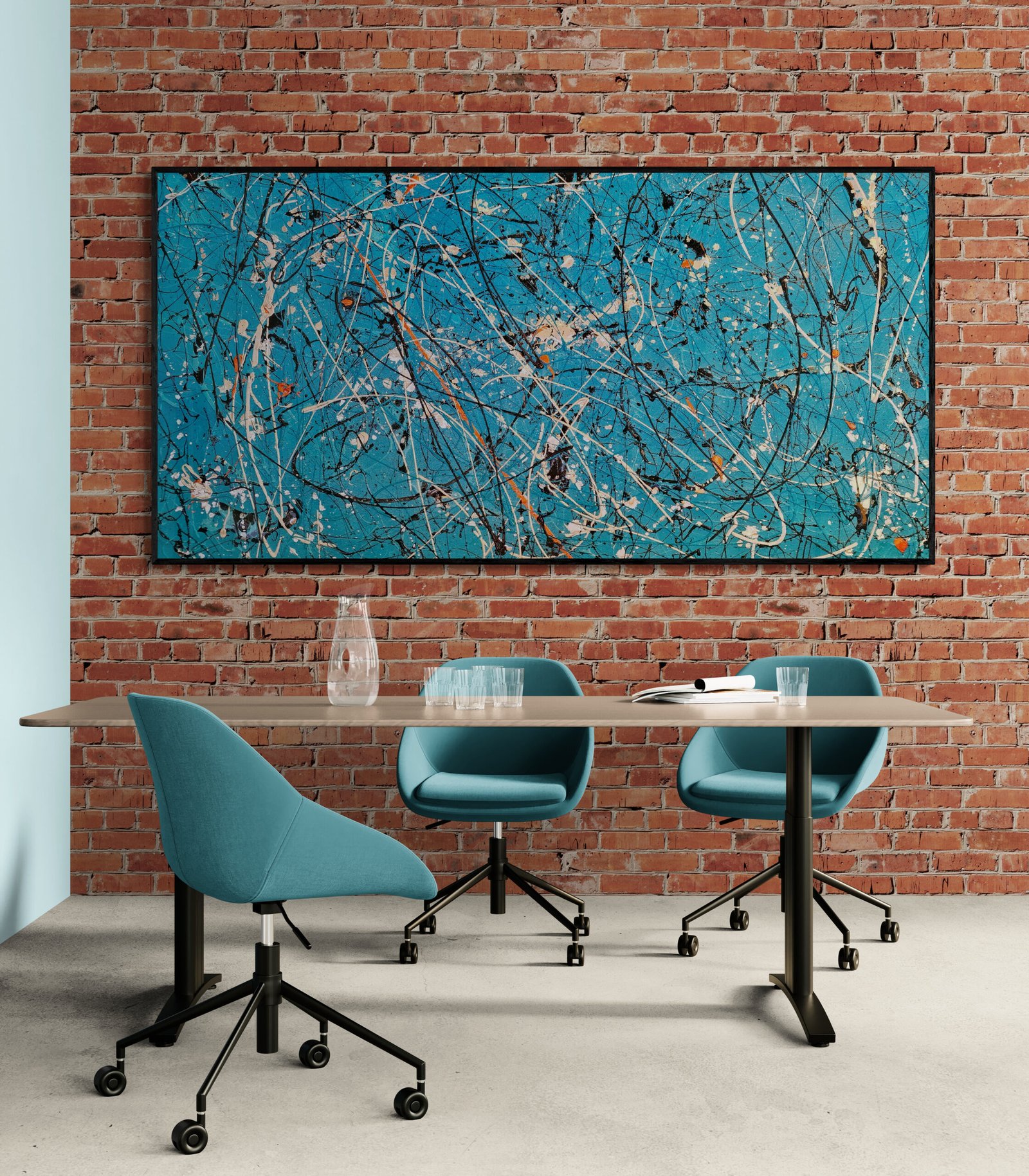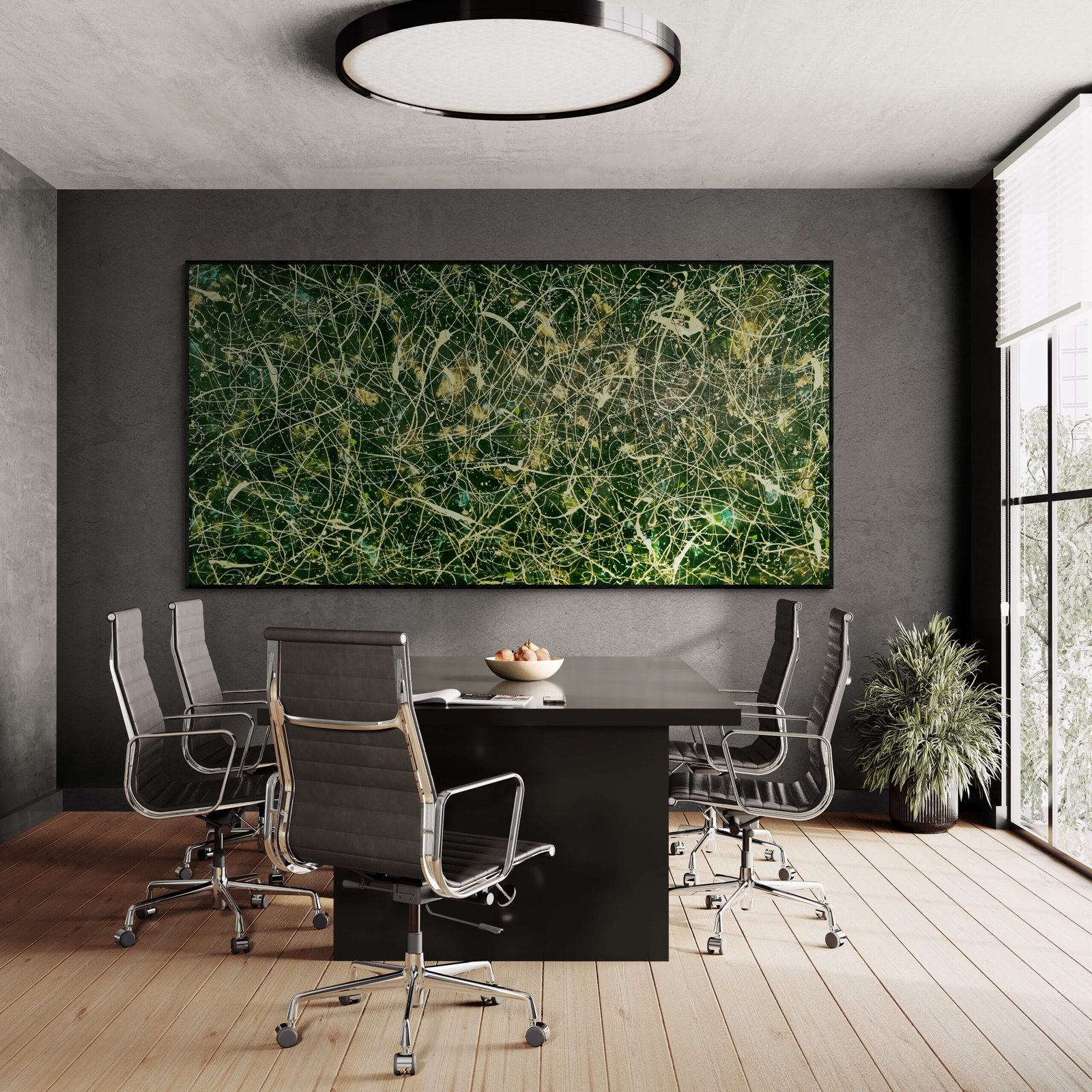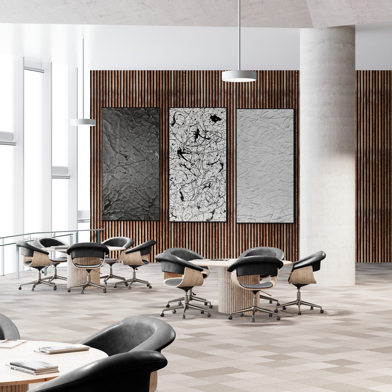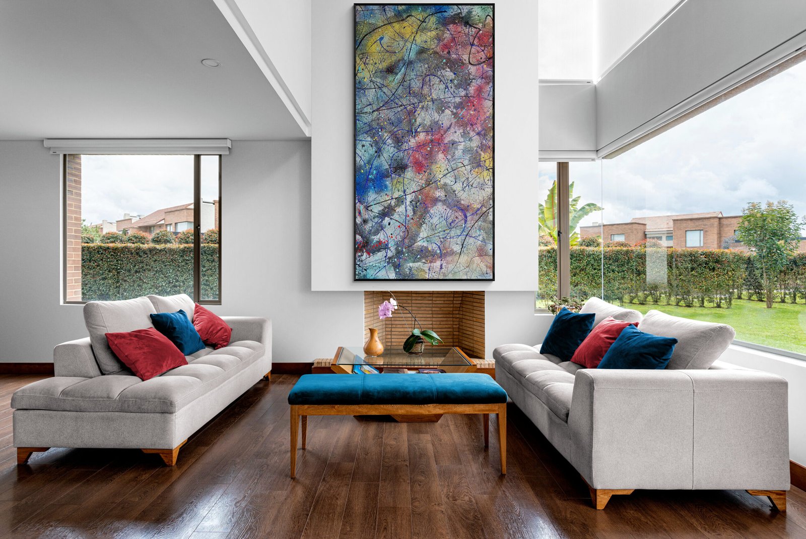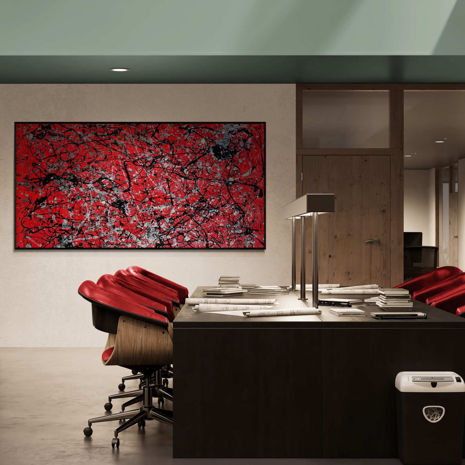 Abstract art is not just something you hang on a wall. It is something that defines a space, sets a mood and gives character to an interior. In this gallery you can see how abstract art in interiors comes to life in real environments: modern living rooms, offices, hotels and large architectural spaces.