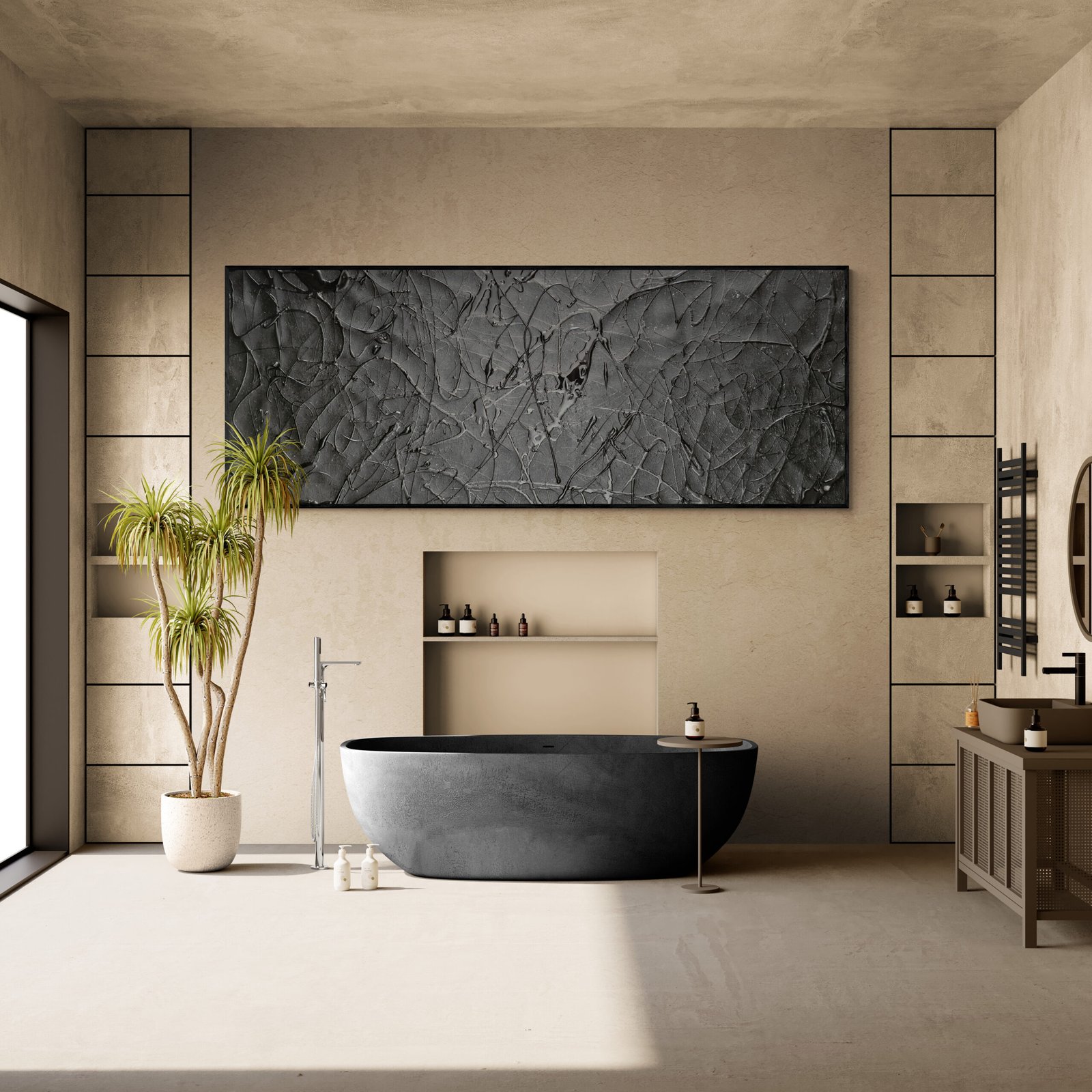 Our work is created both for private clients who want to decorate their homes with a strong and original piece, and for collectors or professionals looking for high-quality artworks within the world of abstract expressionism. When working with abstract art for interiors, scale, balance and composition are just as important as color and texture.