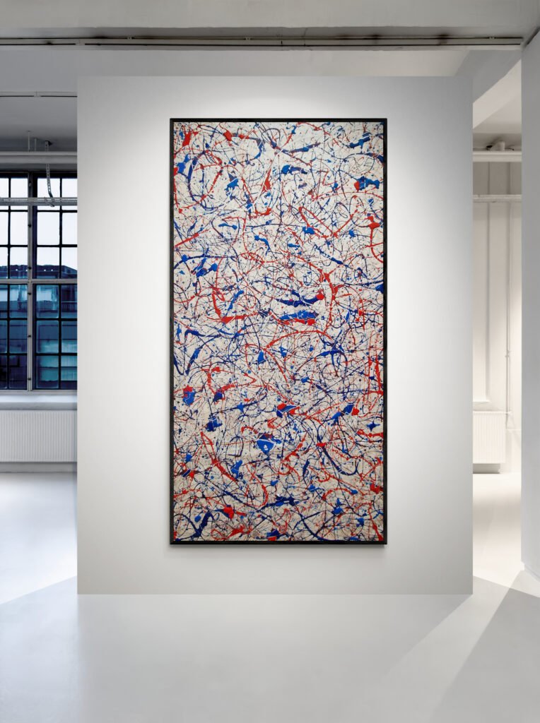 Let yourself be carried away by Number 36, an XXL Jackson Pollock-style abstract canvas that pays tribute to the legendary aesthetics of BMW Motorsport. Inspired by the iconic M colors, this piece blends speed, art, and visual power over a luminous metallic silver background. Entirely hand-painted, it captures the essence of movement through bold gestures, layered textures, and striking contrasts.