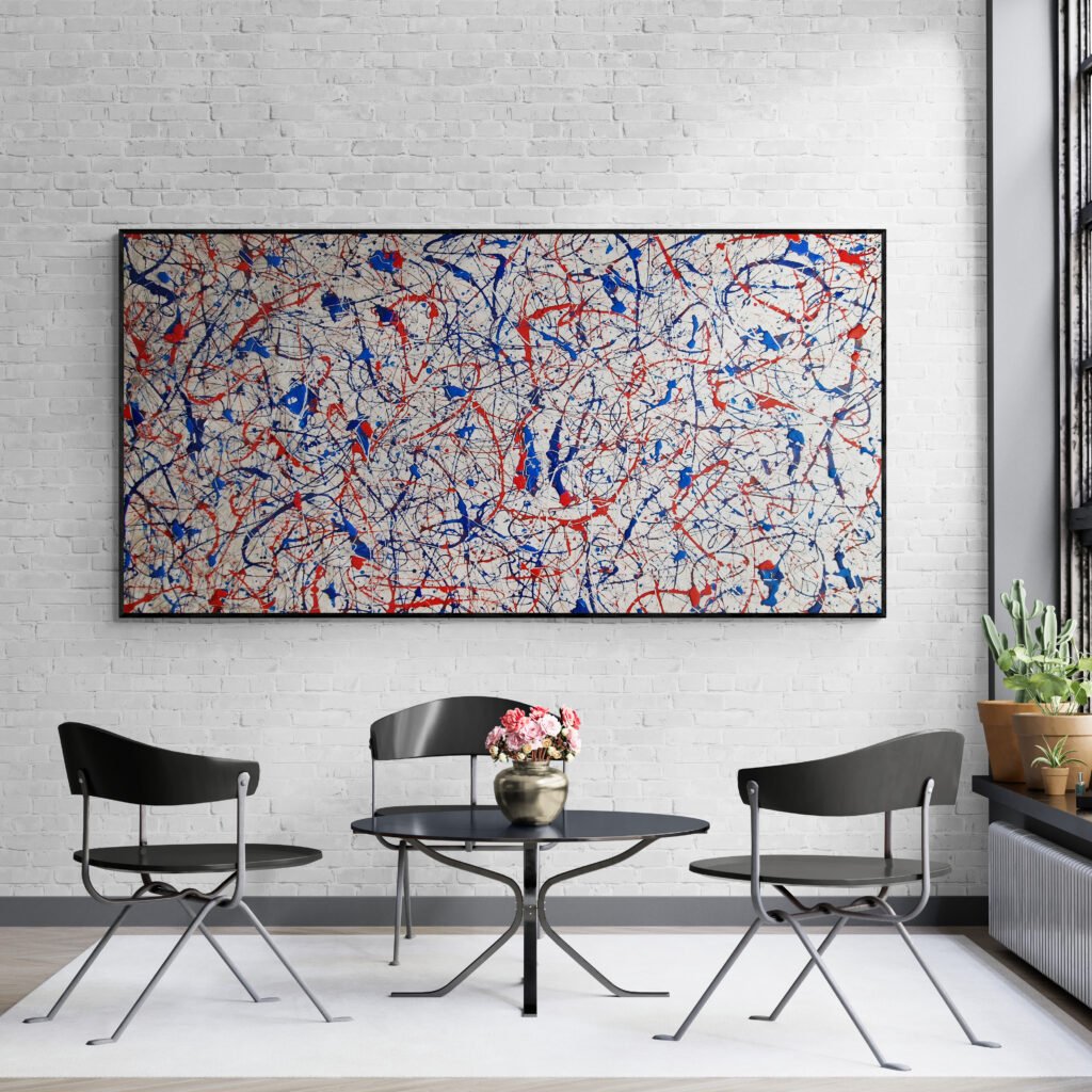 - Unique Jackson Pollock Style Artwork: Dynamic drips, splashes, and layers create a captivating balance between energy and structure.